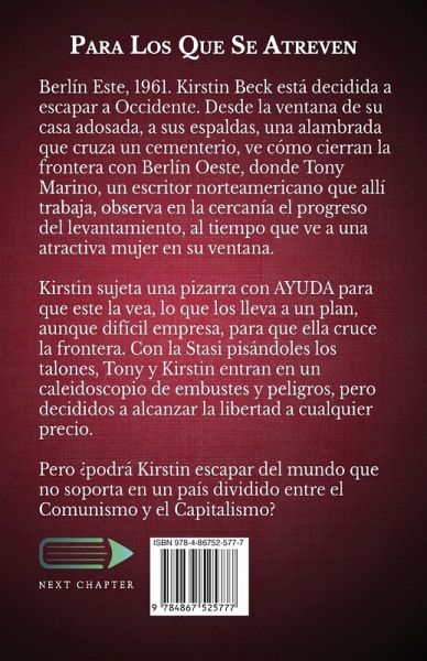 Berlín Este, 1961. Kirstin Beck está decidida a escapar a Occidente. Desde la ventana de su casa adosada, a sus espaldas, una alambrada que cruza un cementerio, ve cómo cierran la frontera con Berlín Oeste, donde Tony Marino, un escritor norteamericano que allí trabaja, observa en la cercanía el progreso del levantamiento, al tiempo que ve a una atractiva mujer en su ventana. Kirstin sujeta una pizarra con AYUDA para que este la vea, lo que los lleva a un plan, aunque difícil empresa, para que ella cruce la frontera. Con la Stasi pisándoles los talones, Tony y Kirstin entran en un…mehr