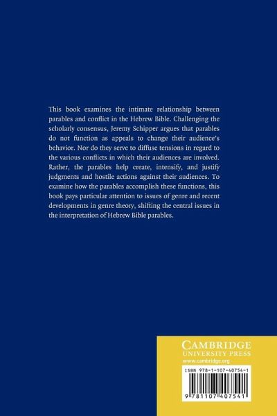 Parables and Conflict in the Hebrew Bible examines the intimate relationship between parables and conflict in the Hebrew Bible. Challenging the scholarly consensus, Jeremy Schipper argues that parables do not function as appeals to change their audience's behavior. Nor do they serve to diffuse tensions in regards to the various conflicts in which their audiences are involved. Rather, the parables function to help create, intensify, and justify judgments and hostile actions against their audiences. In order to examine how the parables accomplish these functions, this book pays particular attention to issues of genre and recent developments in genre theory, shifting the central issues in the interpretation of Hebrew Bible parables.