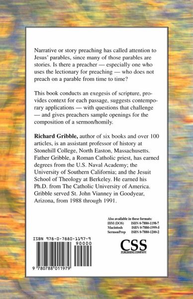 Narrative or story preaching has called attention to Jesus' parables, since many of those parables are stories. Is there a preacher, especially one who uses the lectionary, who does not preach on a parable from time to time? This book conducts an exegesis of scripture, provides context for each passage, suggests contemporary applications with questions that challenge, and gives preachers sample openings for the composition of a sermon/homily. Richard Gribble, CSC, the author of six books and over 100 articles, is an assistant professor of history at Stonehill College in North Easton, Massachusetts. He has earned degrees from the United States Naval Academy, the University of Southern California, and the Jesuit School of Theology at Berkeley. In 1995 he earned his Ph.D. from The Catholic University of America. A Roman Catholic priest, Gribble served at St. John Vianney Parish in Goodyear, Arizona, from 1988 through 1991.