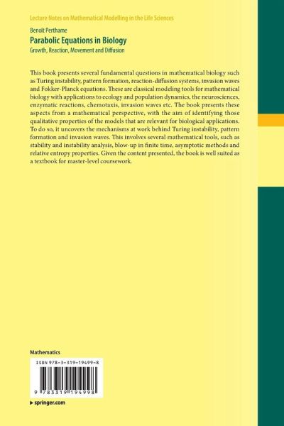 This book presents several fundamental questions in mathematical biology such as Turing instability, pattern formation, reaction-diffusion systems, invasion waves and Fokker-Planck equations. These are classical modeling tools for mathematical biology with applications to ecology and population dynamics, the neurosciences, enzymatic reactions, chemotaxis, invasion waves etc. The book presents these aspects from a mathematical perspective, with the aim of identifying those qualitative properties of the models that are relevant for biological applications. To do so, it uncovers the mechanisms at work behind Turing instability, pattern formation and invasion waves. This involves several mathematical tools, such as stability and instability analysis, blow-up in finite time, asymptotic methods and relative entropy properties. Given the content presented, the book is well suited as a textbook for master-level coursework.