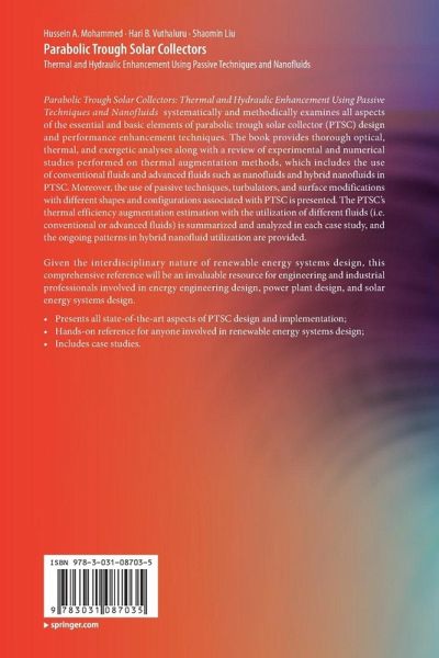 Parabolic Trough Solar Collectors: Thermal and Hydraulic Enhancement Using Passive Techniques and Nanofluids systematically and methodically examines all aspects of the essential and basic elements of parabolic trough solar collector (PTSC) design and performance enhancement techniques. The book provides thorough optical, thermal, and exergetic analyses along with a review of experimental and numerical studies performed on thermal augmentation methods, which includes the use of conventional fluids and advanced fluids such as nanofluids and hybrid nanofluids in PTSC. Moreover, the use of…mehr