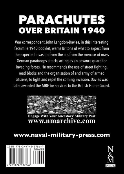 War correspondent John Langdon-Davies, in this interesting facsimile 1940 booklet, warns Britons of what to expect from the expected invasion from the air, from the menace of mass German paratroops attacks acting as an advance guard for invading forces. He recommends the use of street fighting, road blocks and the organisation of and army of armed citizens, to fight and repel the coming invasion. Davies was later awarded the MBE for services to the British Home Guard.