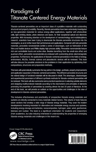 The inclusive effectiveness and practicality of prospective titanate energy materials and systems are directly connected to many materials-related factors. This volume of book features totally seven sections that envelop a wide range of titanate energy materials. They cover the modern developments involving materials for alternative and renewable energy sources and systems, including energy storage and batteries, nanocomposites, hydrogen, solar, wind, geothermal, biomass and nuclear. The book is a significant orientation for students and researchers (from academics, but also industry) interested in understanding the properties of emerging titanate energy materials and challenges in the recent era.