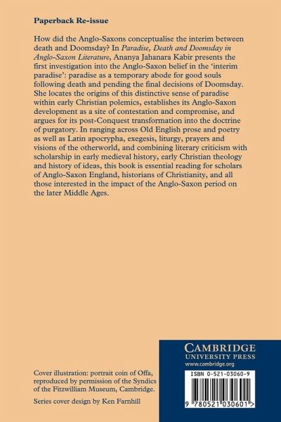 How did the Anglo-Saxons conceptualize the interim between death and Doomsday? In this book, Ananya Jahanara Kabir presents an investigation into the Anglo-Saxon belief in the 'interim paradise': paradise as a temporary abode for good souls following death and pending the final decisions of Doomsday. She locates the origins of this distinctive sense of paradise within early Christian polemics, establishes its Anglo-Saxon development as a site of contestation and compromise, and argues for its post-Conquest transformation into the doctrine of purgatory. In ranging across Old English prose and poetry as well as Latin apocrypha, exegesis, liturgy, prayers and visions of the otherworld, and combining literary criticism with recent scholarship in early medieval history, early Christian theology and history of ideas, this book is essential reading for scholars of Anglo-Saxon England, historians of Christianity, and all those interested in the impact of the Anglo-Saxon period on the later Middle Ages.