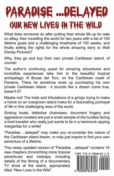 What does someone do after putting their whole life up for sale on eBay, then travelling the world for two years with a list of 100 lifetime goals and a challenging timeframe of 100 weeks, and finally selling the rights for the whole amazing story to Walt Disney Pictures? Why, they go and buy their own private Caribbean island, of course! The author's continuing quest for amazing adventures and incredible experiences take him to the beautiful tropical archipelago of Bocas del Toro, on the Caribbean coast of Panama. There he somehow ends up purchasing his own private Caribbean island - it sounds like a dream come true, doesn't it? Maybe not! The trials and tribulations of a gringo trying to make a home on an overgrown island make for a fascinating portrayal of life in this challenging area of the world. Sinking boats, defective chainsaws, document forgery and aggressive roosters are just a small sample of the hurdles facing a tired traveller who really just wants to lie in a hammock sipping margaritas for a while! "Caribbean Island Tales" may make you re-consider the nature of the Caribbean island dream, or may just inspire to find your own adventure of a lifetime. This newly updated version of "Paradise ...delayed" contains 16 new chapters chronicling more tropical adventures and mishaps, including details of the filming of a documentary TV show at the island, appropriately titled "New Lives in the Wild".