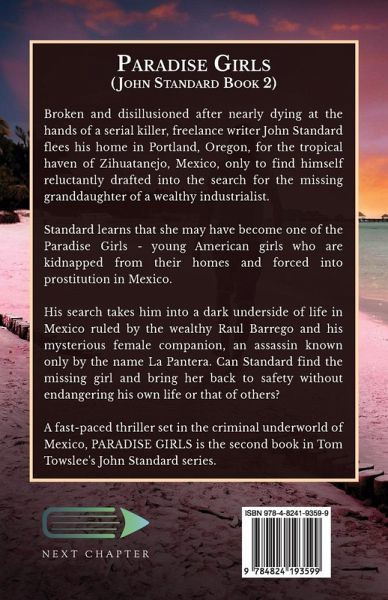 Broken and disillusioned after nearly dying at the hands of a serial killer, freelance writer John Standard flees his home in Portland, Oregon, for the tropical haven of Zihuatanejo, Mexico, only to find himself reluctantly drafted into the search for the missing granddaughter of a wealthy industrialist. Standard learns that she may have become one of the Paradise Girls - young American girls who are kidnapped from their homes and forced into prostitution in Mexico. His search takes him into a dark underside of life in Mexico ruled by the wealthy Raul Barrego and his mysterious female companion, an assassin known only by the name La Pantera. Can Standard find the missing girl and bring her back to safety without endangering his own life or that of others? A fast-paced thriller set in the criminal underworld of Mexico, PARADISE GIRLS is the second book in Tom Towslee's John Standard series.