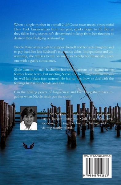 When a single mother in a small Gulf Coast town meets a successful New York businessman from her past, sparks begin to fly. But as they fall in love, secrets he's determined to keep from her threaten to destroy their fledgling relationship. Nicole Russo runs a café to support herself and her sick daughter and to pay back her late husband's enormous debts. Independent and unwavering, she refuses to rely on any man to help her financially, even one with a guilty conscience. Slade Larson, a rich bachelor, has no intentions of staying in his former home town, but meeting Nicole and her daughter Em throws his well-laid plans into turmoil. He has no idea how to deal with the feelings he has for Nicole and Em. Can the healing power of forgiveness and love bring them back together when Nicole finds out the truth?