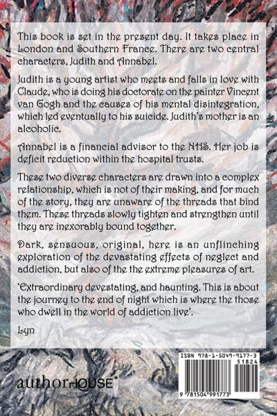 This book is set in the present day. It takes place in London and Southern France. There are two central characters, Judith and Annabel. Judith is a young artist who meets and falls in love with Claude, who is doing his doctorate on the painter Vincent van Gogh and the causes of his mental disintegration, which led eventually to his suicide. Judith's mother is an alcoholic. Annabel is a financial advisor to the NHS. Her job is deficit reduction within the hospital trusts. These two diverse characters are drawn into a complex relationship, which is not of their making, and for much of the story, they are unaware of the threads that bind them. These threads slowly tighten and strengthen until they are inexorably bound together. Dark, sensuous, original, here is an unflinching exploration of the devastating effects of neglect and addiction, but also of the the extreme pleasures of art. 'Extraordinary devestating, and haunting. This is about the journey to the end of night which is where the those who dwell in the world of addiction live'. Lyn