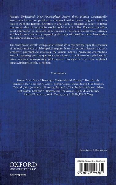 Paradise Understood: New Philosophical Essays about Heaven systematically investigates heaven, or paradise, as conceived within theistic religious traditions such as Rabbinic Judaism, Christianity, and Islam. It considers a variety of topics concerning what life in paradise would, could, or will be like for human persons. The collection offers novel approaches to questions about heaven of perennial philosophical interest, and breaks new ground by expanding the range of questions about heaven that philosophers have considered. The contributors wrestle with questions about human life in paradise that span the spectrum of the major subfields of philosophical enquiry. By employing both historical and contemporary philosophical resources, the volume makes a pioneering contribution toward answering pressing questions about human life in paradise. It will serve as a platform for future research, reinvigorating philosophical investigation into these neglected topics within philosophy of religion.