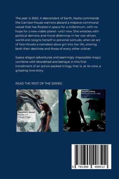 The year is 3550. A descendant of Earth, Nadia commands the Garrison house warriors aboard a massive communal vessel that has floated in space for a millennium, with no hope for a new viable planet--until now. She wrestles with political demons and moral dilemmas in her war-driven world and resigns herself to personal solitude, when an act of fate thrusts a nameless slave girl into her life, altering both their destinies and those of every other orbiter. Space dragon adventures and seemingly impossible magic combine with bloodshed and betrayal in this first installment of an action-packed trilogy that is, at its core, a gripping love story.