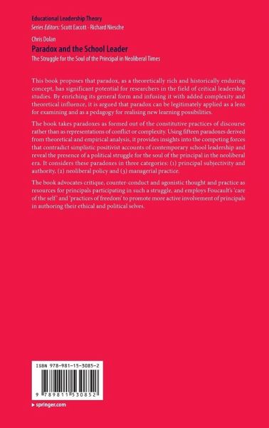 The book takes paradoxes as formed out of the constitutive practices of discourse rather than as representations of conflict or complexity. Using fifteen paradoxes derived from theoretical and empirical analysis, it provides insights into the competing forces that contradict simplistic positivist accounts of contemporary school leadership and reveal the presence of a political struggle for the soul of the principal in the neoliberal era. It considers these paradoxes in three categories: (1) principal subjectivity and authority, (2) neoliberal policy and (3) managerial practice.