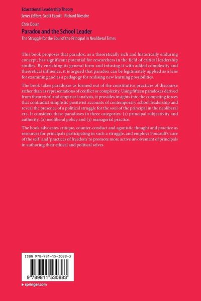 The book takes paradoxes as formed out of the constitutive practices of discourse rather than as representations of conflict or complexity. Using fifteen paradoxes derived from theoretical and empirical analysis, it provides insights into the competing forces that contradict simplistic positivist accounts of contemporary school leadership and reveal the presence of a political struggle for the soul of the principal in the neoliberal era. It considers these paradoxes in three categories: (1) principal subjectivity and authority, (2) neoliberal policy and (3) managerial practice.