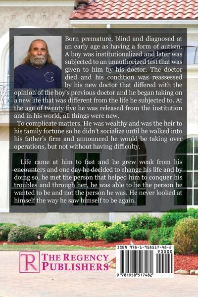 Born premature, blind and diagnosed at an early age as having a form of autism. A boy was institutionalized and later was subjected to an unauthorized test that was given to him by his doctor. The doctor died and his condition was reassessed by his new doctor that differed with the opinion of the boy's previous doctor and he began taking on a new life that was different from the life he subjected to. At the age of twenty five he was released from the institution and in his world, all things were new. To complicate matters. He was wealthy and was the heir to his family fortune so he didn't socialize until he walked into his father's firm and announced he would be taking over operations, but not without having difficulty. Life came at him to fast and he grew weak from his encounters and one day he decided to change his life and by doing so, he met the person that helped him to conquer his troubles and through her, he was able to be the person he wanted to be and not the person he was. He never looked at himself the way he saw himself to be again.
