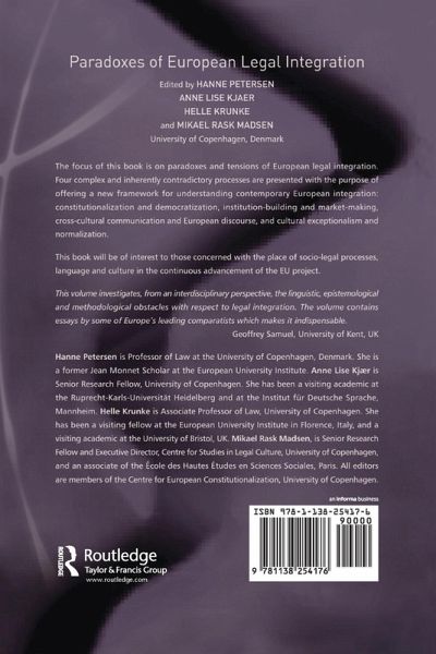 Focusing on paradoxes and tensions of European legal integration, this book investigates four complex and inherently contradictory processes - constitutionalization and democratization, institution-building and market-making, cross-cultural communication and European discourse, and cultural exceptionalism and normalization - to offer a new framework for understanding contemporary European integration. The volume features contributions from some of the biggest names in European legal philosophy, to include Neil MacCormick, Yves Dezalay and Bryant Garth, Pierre Legrand, Heikki Mattila and David Nelken. It presents a timely, interdisciplinary approach to an important and topical area and will be of interest to those concerned with the place of socio-legal processes, language and culture in the continuous advancement of the EU project.
