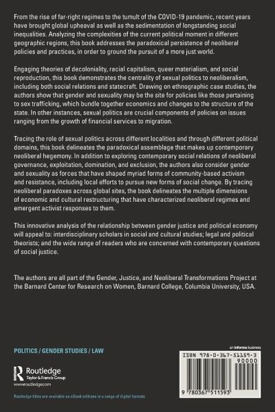 Tracing the role of sexual politics across different localities and through different political domains, this book delineates the paradoxical assemblage that makes up contemporary neoliberal hegemony. In addition to exploring contemporary social relations of neoliberal governance, exploitation, domination, and exclusion, the authors also consider gender and sexuality as forces that have shaped myriad forms of community-based activism and resistance, including local efforts to pursue new forms of social change. By tracing neoliberal paradoxes across global sites, the book delineates the multiple dimensions of economic and cultural restructuring that have characterized neoliberal regimes and emergent activist responses to them.