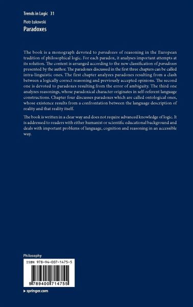 "Piotr Lukowski's Paradoxes is an abridged, revised and translated version of a book written in Polish ... . As a source of paradoxes and arguments related to them, the book is highly valuable. ... Lukowski often develops his analyses carefully. In his book he not only gathers the paradoxes ... but also presents a rather unified and interesting view on them. It is definitely a good read." (Rafal Urbaniak, Studia Logica, Vol. 101, 2013)