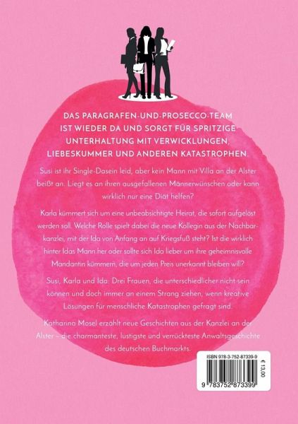"Paragrafen und Prosecco: Justitia und andere Katastrophen" von Katharina Mosel ist ein Frauenroman, der sich um die täglichen Probleme in der Kanzlei, den Mandanten und dem Privatleben der dreien handelt. Nach anfänglichen Schwierigkeiten kann ich in die Geschichte eintauchen. Der Schreibstil ist leicht und locker.