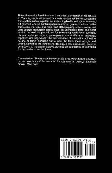 This volume is a collection of Peter Newmark's articles in The Linguist and covers a variety of topics: the force of translation in public life, instancing health and social services, art galleries, operas, light magazines and even gives some hints on the translation of erotica.