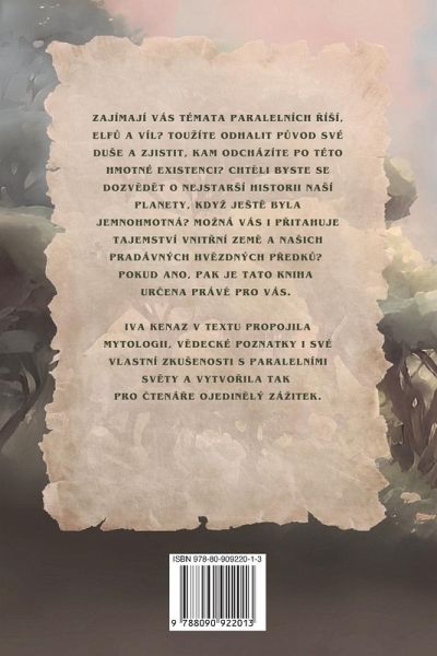 Zajímají vás témata paralelních řísí, elfů a víl? Touzíte odhalit původ své duse a zjistit, kam odcházíte po této hmotné existenci? Chtěli byste se dozvědět o nejstarsí historii nasí planety, kdyz jestě byla jemnohmotná? Mozná vás i přitahuje tajemství Vnitřní země a nasich pradávných hvězdných předků? Pokud ano, pak je tato kniha určena právě pro vás. Iva Kenaz v textu propojila mytologii, vědecké poznatky i své vlastní zkusenosti s paralelními světy a vytvořila tak pro čtenáře vskutku jedinečnou četbu.