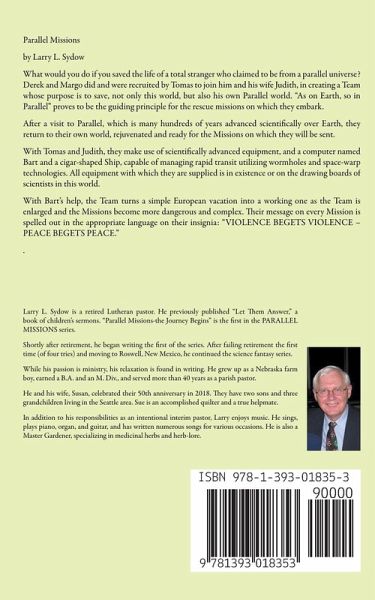 Parallel Missions by Larry L. Sydow What would you do if you saved the life of a total stranger who claimed to be from a parallel universe? Derek and Margo did, and the stranger, Tomas, recruited them to join him and his wife Judith in creating a Team whose purpose is to save this world and their Parallel world. "As on Earth, so in Parallel" proves to be the guiding principle for the rescue missions on which they embark. After a visit to Parallel, which is many hundreds of years advanced scientifically over Earth, they return to this world, rejuvenated and ready for the Missions on which they…mehr