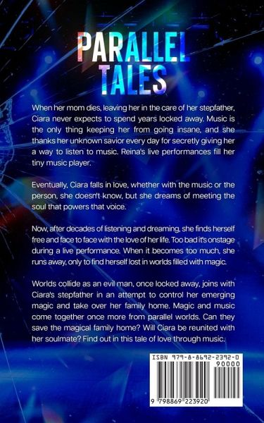 When her mom dies, leaving her in the care of her stepfather, Ciara never expects to spend years locked away. Music is the only thing keeping her from going insane, and she thanks her unknown savior every day for secretly giving her a way to listen to music. Reina's live performances fill her tiny music player. Eventually, Ciara falls in love, whether with the music or the person, she doesn't know, but she dreams of meeting the soul that powers that voice. Now, after decades of listening and dreaming, she finds herself free and face to face with the love of her life. Too bad it's onstage during a live performance. When it becomes too much, she runs away, only to find herself lost in worlds filled with magic. Worlds collide as an evil man, once locked away, joins with Ciara's stepfather in an attempt to control her emerging magic and take over her family home. Magic and music come together once more from parallel worlds. Can they save the magical family home? Will Ciara be reunited with her soulmate? Find out in this tale of love through music.