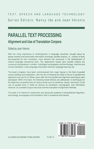 "Parallel Text Processing succeeds admirably at its goals and will be of use to a wide range of people...I can easily imagine using this book both to introduce ideas in a graduate seminar and as a reference for research...All readers will be grateful that the editor chose to include separate and fairly thorough indexes for terms, authors, and languages and writing systems." (Philip Resnik, Computational Linguistics, 27:04)
