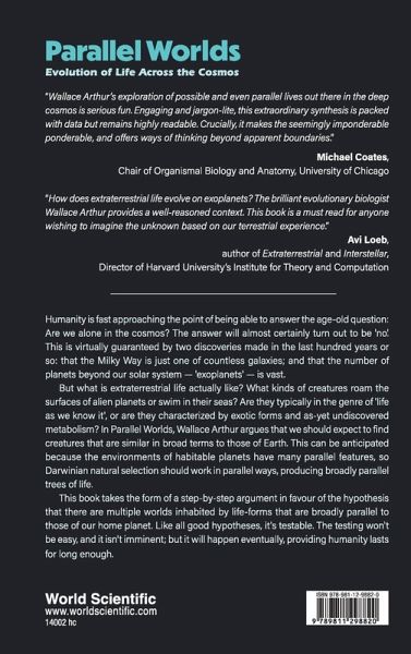 Humanity is fast approaching the point of being able to answer the age-old question: Are we alone in the cosmos? The answer will almost certainly turn out to be 'no'. This is virtually guaranteed by two discoveries made in the last hundred years or so: that the Milky Way is just one of countless galaxies; and that the number of planets beyond our solar system - 'exoplanets' - is vast. But what is extraterrestrial life actually like? What kinds of creatures roam the surfaces of alien planets or swim in their seas? Are they typically in the genre of 'life as we know it', or are they characterized by exotic forms and as-yet undiscovered metabolism? In Parallel Worlds, Wallace Arthur argues that we should expect to find creatures that are similar in broad terms to those of Earth. This can be anticipated because the environments of habitable planets have many parallel features, so Darwinian natural selection should work in parallel ways, producing broadly parallel trees of life. This book takes the form of a step-by-step argument in favour of the hypothesis that there are multiple worlds inhabited by life-forms that are broadly parallel to those of our home planet. Like all good hypotheses, it's testable. The testing won't be easy, and it isn't imminent; but it will happen eventually, providing humanity lasts for long enough.