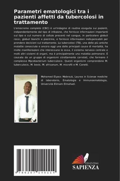 L'emocromo completo (CBC) è un'indagine di routine eseguita sui pazienti, indipendentemente dal tipo di infezione, che fornisce informazioni importanti sul tipo e sul numero di cellule presenti nel sangue, in particolare globuli rossi, globuli bianchi e piastrine, e fornisce informazioni indispensabili per prendere decisioni sul trattamento. La tubercolosi (TB), una delle più antiche malattie conosciute e ancora oggi una delle principali cause di mortalità, ha molte manifestazioni che interessano le ossa, il sistema nervoso centrale e molti altri sistemi di organi, ma è principalmente una malattia polmonare. È causata da un gruppo di organismi strettamente correlati, che formano il complesso Mycobacterium tuberculosis. Questi organismi comprendono M. tuberculosis, M. bovis, M. africanum, M. microfti e M. Canetti.
