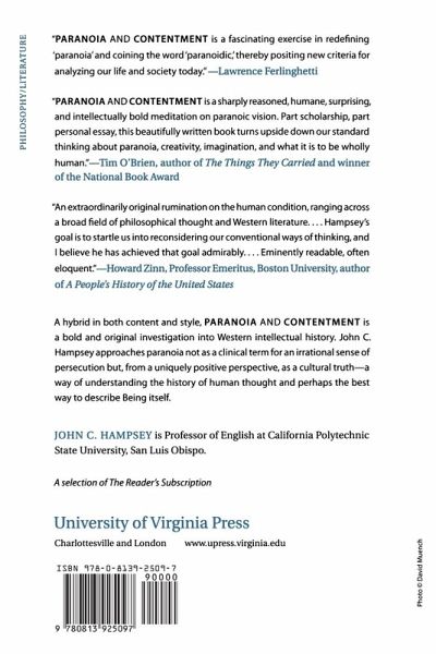 A hybrid in both content and style, Paranoia and Contentment is a bold and original investigation into Western intellectual history. John Hampsey approaches paranoia not as a clinical term for an irrational sense of persecution but from a uniquely positive perspective, as a cultural truth--a way of understanding the history of human thought and perhaps the best way to describe Being itself. Hampsey turns first to the ancient Greeks to explore the origin of the concept of paranoia. "Paranoia"--literally "beside the mind"--was the Greeks' primarily negative term for thinking outside the usual thought processes, or beyond reason. Working from this classical definition, Hampsey sees paranoia operating in two distinctly different ways. First there is the paranoic, his name for off-track thinking that is expansive, creative, even visionary. This is opposed to the paranoidic, which is motivated by fear, delusion, and a pursuit of contentment so obsessive that it has crippled human imagination and diminished tolerance of those who are perceived to threaten that contentment. The distinction is especially significant because the paranoidic so dominates Western thought and culture that paranoic thinking has become nearly lost to us. Hampsey seeks to recover this expansive mode of thought by tracing an arc of paranoic moments in Western culture. Abraham, Jesus, Socrates, Hypatia, Joan of Arc, Goethe, Blake, Kierkegaard, Schreber--these are only a few among the many figures whom the author examines in order to isolate moments in Western intellectual history when paranoic vision temporarily breaks through the barriers of paranoidic fear. The book's analyses and inquiries are joined by anecdotal interludes in which Hampsey applies the conflicting concepts of paranoic and paranoidic to revealing moments in his own life. As humanly engaging as it is erudite, Paranoia and Contentment seeks to reclaim paranoic thinking as a crucial part of our consciousness and an indispensable component to understanding our cultural history.