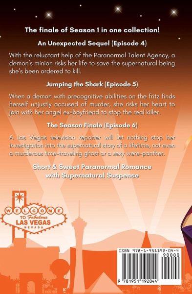 The final THREE episodes of season one of the Paranormal Talent Agency! An Unexpected Sequel (Episode 4) With the reluctant help of the Paranormal Talent Agency, a demon's minion risks her life to save the supernatural being she's been ordered to kill. Jumping the Shark (Episode 5) When a demon with precognitive abilities on the fritz finds herself unjustly accused of murder, she risks her heart to join with her angel ex-boyfriend to stop the real killer. The Season Finale (Episode 6) A Las Vegas television reporter will let nothing stop her investigation into the supernatural story of a lifetime, not even a murderous time-traveling ghost or a sexy were-panther. Paranormal Mystery & Flirty Romance These are the final three episodes of the Paranormal Talent Agency. Just like on television, each episode contains a complete sweet paranormal romance and mystery; to enjoy the crossover characters and larger story you'll want to read them all.