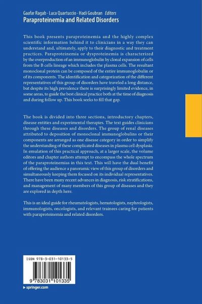 The book is divided into three sections, introductory chapters, disease entities and experimental therapies. The text guides clinicians throughthese diseases and disorders. The group of renal diseases attributed to deposition of monoclonal immunoglobulins or their components are arranged as one disease category in order to simplify the understanding of these complicated diseases in plasma cell dysplasia. In emulation of this practical approach, at a larger scale, the volume editors and chapter authors attempt to encompass the whole spectrum of the paraproteinemias in this text. This will have the dual benefit of offering the audience a panoramic view of this group of disorders and simultaneously keeping them focused on its individual representatives. There have been many recent advances in diagnosis, risk stratifications, and management of many members of this group of diseases and they are explored in depth here.