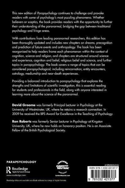 This new edition of Parapsychology continues to challenge and provoke readers with some of psychology's most puzzling phenomena. Whether believers or sceptics, the book provides readers with the opportunity to further their understanding of the paranormal, bridging the gap between traditional psychology and fringe areas.