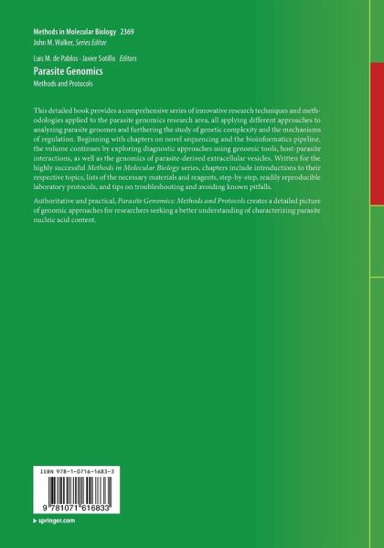 Nanopore Long Read DNA Sequencing of Protozoan Parasites: Hybrid Genome Assembly of Trypanosoma cruzi.- Chromosomes Conformation Capture Coupled with Next Generation Sequencing (Hi-C) in Plasmodium falciparum.- Sequencing and Reconstructing Helminth Mitochondrial Fenomes Directly from Genomic Next-Generation Sequencing Data.- Automated Phylogenetic Analysis Using Best Reciprocal BLAST.- An Illumina MiSeq-Based Amplicon Sequencing Method for the Detection of Mixed Parasite Infections Using the Blastocystis SSU rRNA Gene as an Example.- Giardia duodenalis: Detection by Quantitative Real-Time PCR and Molecular Diversity.- Conditional Gene Deletion in Mammalian and Mosquito Stages of Plasmodium berghei Using Dimerizable Cre Recombinase.- Coupling Auxin-Inducible Degron System with Ultrastructure Expansion Microscopy to Accelerate the Discovery of Gene Function in Toxoplasma gondii.- Genome-Wide Analysis of RNA-Protein Interactions in Plasmodium falciparum Using eCLIP-Seq.- Transcriptional Analysis of Tightly Synchronized Plasmodium falciparum Intraerythrocytic Stages by RT-qPCR.- Analysis of the Interaction between Plasmodium falciparum-Infected Erythrocytes and Human Endothelial Cells Using a Laminar Flow System, Bioinformatic Tracking and Transcriptome Analysis.- Integration of Genomic and Transcriptomic Data to Elucidate Molecular Processes in Babesia divergens.- Integration of Functional Genomic, Transcriptomic, and Metabolomic Data to Identify Key Features in Genomic Expression, Metabolites, and Metabolic Pathways of Babesia divergens.- Genome Analysis of Programmed DNA Elimination in Parasitic Nematodes.- Helminth Microbiota Profiling Using Bacterial 16S rRNA Gene Amplicon Sequencing: From Sampling to Sequence Data Mining.- Methods for the Isolation and Study of Exovesicle DNA from Trypanosomatid Parasites.- Isolation and Analysis of MicroRNAs from Extracellular Vesicles of the Parasitic Model Nematodes Nippostrongylus brasiliensis and Trichuris muris.