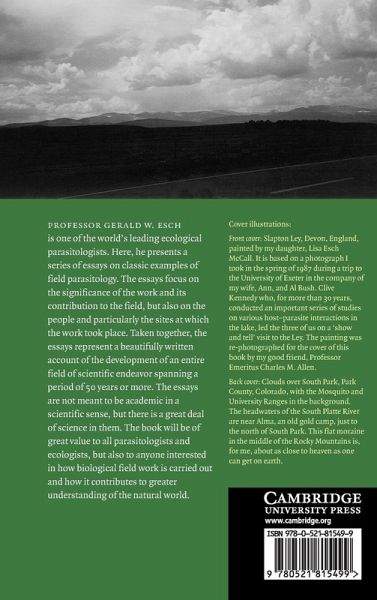 Professor Gerald W. Esch, one of the world's leading ecological parasitologists, presents a series of essays on classic examples of field parasitology. The essays focus on the significance of the work and its contribution to the field but also on the people and, particularly, the sites at which the work took place. Taken together, they represent a beautifully written account of the development of an entire field of scientific endeavor spanning a period of 50 years or more. While the essays are not meant to be academic in a scientific sense, they contain a great deal of science. The book will be of great value to all parasitologists and ecologists, but also to anyone interested in how biological field work is carried out and how it contributes to greater understanding of the natural world.