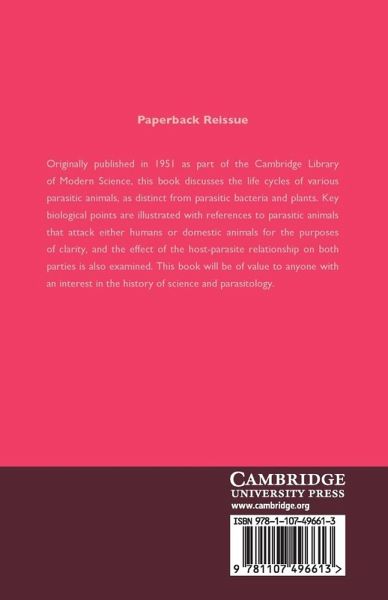 Originally published in 1951 as part of the Cambridge Library of Modern Science, this book discusses the life cycles of various parasitic animals, as distinct from parasitic bacteria and plants. Key biological points are illustrated with references to parasitic animals that attack either humans or domestic animals for the purposes of clarity, and the effect of the host-parasite relationship on both parties is also examined. This book will be of value to anyone with an interest in the history of science and parasitology.
