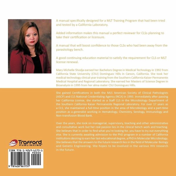 A manual specifically designed for a MLT Training Program that had been tried and tested by a California Laboratory. Added information makes this manual a perfect reviewer for CLSs planning to take their certification or licensure. A manual that will boost confidence to those CLSs who had been away from the parasitology bench. A good continuing education material to satisfy the requirement for CLS or MLT license renewal.