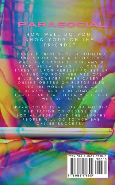 Casey is nineteen, struggling and social media obsessed. When her favorite StreamVid star, Della, falls ill, Casey takes it upon herself to set up a fund to foot her medical bills. However, when Casey's online obsession bleeds into her IRL world, things go sideways and it becomes all too clear that Della might not be who she seems. PARASOCIAL is a Florida Gothic meditation on obsession, social media, and the lengths people will go to achieve online success.