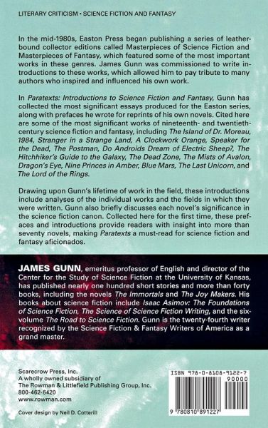 In the mid-1980s, Easton Press began publishing a series of leather-bound collector editions called "Masterpieces of Science Fiction," and "Masterpieces of Fantasy," which featured some of the most important works in these genres. Author James Gunn was commissioned to write introductions to these works, which allowed him to pay tribute to many authors who inspired and influenced him. In Paratexts: Introductions to Science Fiction and Fantasy, Gunn has collected the most significant essays produced for the Easton series, along with prefaces he wrote for reprints of his own novels. Drawing upon Gunn's lifetime of work in the field, these introductions include analyses of the individual works and the fields in which they were written. Gunn also briefly discusses each novel's significance in the science fiction canon. Collected here for the first time, these prefaces and introductions provide readers with insight into more than seventy novels, making Paratexts a must read for science fiction and fantasy aficionados.