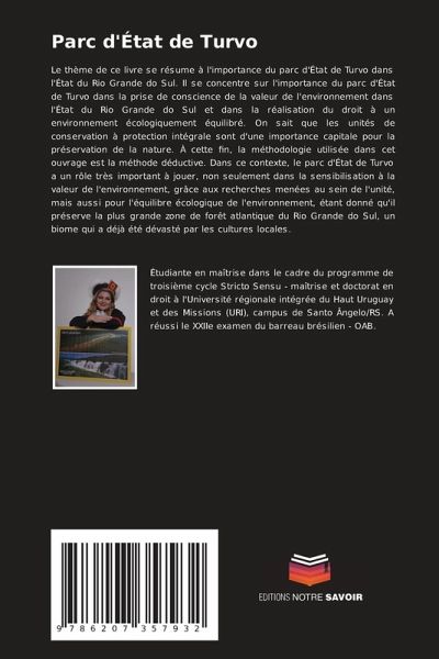 Le thème de ce livre se résume à l'importance du parc d'État de Turvo dans l'État du Rio Grande do Sul. Il se concentre sur l'importance du parc d'État de Turvo dans la prise de conscience de la valeur de l'environnement dans l'État du Rio Grande do Sul et dans la réalisation du droit à un environnement écologiquement équilibré. On sait que les unités de conservation à protection intégrale sont d'une importance capitale pour la préservation de la nature. À cette fin, la méthodologie utilisée dans cet ouvrage est la méthode déductive. Dans ce contexte, le parc d'État de Turvo a un rôle très important à jouer, non seulement dans la sensibilisation à la valeur de l'environnement, grâce aux recherches menées au sein de l'unité, mais aussi pour l'équilibre écologique de l'environnement, étant donné qu'il préserve la plus grande zone de forêt atlantique du Rio Grande do Sul, un biome qui a déjà été dévasté par les cultures locales.