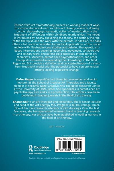 Parent-Child Art Psychotherapy presents a working model of ways to incorporate parents into a child's art therapy sessions, drawing on the relational-psychoanalytic notion of mentalization in the treatment of difficulties within childhood relationships. The model is introduced by clearly explaining the theory, the setting, the role of the therapist, and the work with the parents. In addition, the book offers a full section dedicated to practical applications of the model, replete with illustrative case studies and detailed therapeutic art-based interventions covering leadership, movement, collaborative and solitary work, and parent-child exercises. Intended for art therapists, students, parent-child psychotherapists, and other therapists interested in expanding their knowledge in the field, Regev and Snir provide a definition and conceptualization of a short-term treatment model with the potential to have comprehensive effects leading to positive change.