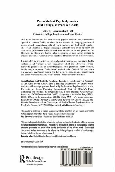 Preface Introduction: On wild things within an introduction to psychoanalytic thinking Face to Face Containment and Early Exchange Face and façade the mother's face as the baby's mirror Mirror role of mother and family in child development Conversations with a two month old Emotions and emotional communication in infants Where the wild things are The experience of the skin in early object relations A theory of thinking Unprocessed Residues1 Ghosts in the nursery: a psychoanalytic approach to the problems of impaired infant mother relationships Therapeutic interventions in infancy: two contrasting cases of persistent crying Sleep problems in babies and young children Into the night: children's dream books Unconscious communication The dead mother complex Representations and Reality Joy and woe: response to prenatal testing Parenting an infant with a birth defect the regulation of self esteem Amanda: observations and reflections of a bottle fed baby who found a breast mother Cannibalism and succour: is breast always best? (thoughts on 'Amanda') Management Issues Psycho analytic insight and relationships Understanding the language of babies The effect of infants' behaviour on maternal mental health Management of perinatal loss of a twin Pregnancy after stillbirth or neonatal death: psychological risks and management Feeding disorders