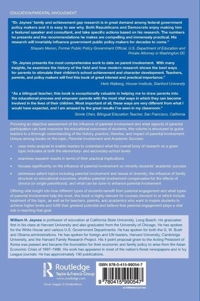 This volume examines cutting-edge research to provide a thorough understanding of the history, practice, theories, and impact of parental involvement and what aspects of it can best maximize the educational outcomes of students.