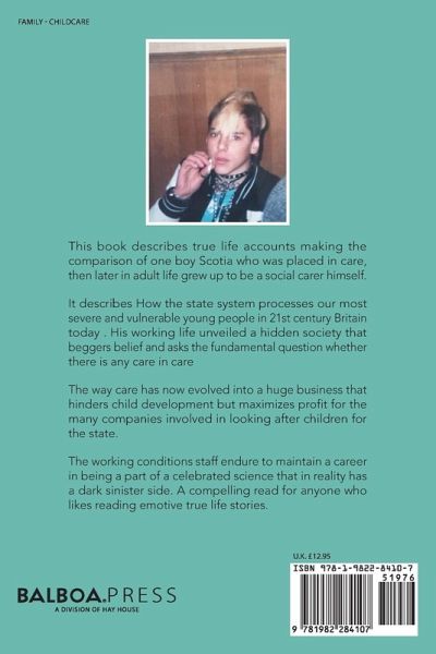 This book describes true life accounts making the comparison of one boy Scotia who was placed in care, then later in adult life grew up to be a social carer himself. It describes How the state system processes our most severe and vulnerable young people in 21st century Britain today . His working life unveiled a hidden society that beggers belief and asks the fundamental question whether there is any care in care The way care has now evolved into a huge business that hinders child development but maximizes profit for the many companies involved in looking after children for the state. The working conditions staff endure to maintain a career in being a part of a celebrated science that in reality has a dark sinister side. A compelling read for anyone who likes reading emotive true life stories.