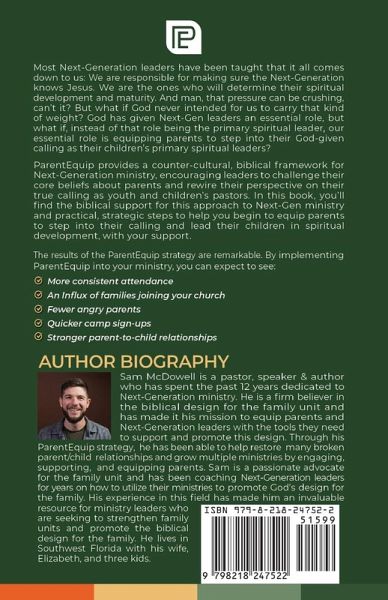 Whether it be intentional or accidental, most churches approach next-gen discipleship from the perspective that church leaders are meant to be the loudest spiritual voices in the lives of kids and students. The Bible, however, makes it clear that God's original design and intention was for parents to assume this role and responsibility. It's important for church leaders to realign their mission with God's vision for families and take action to help reinstate parents to their rightful place as the primary spiritual leaders in the lives of their kids. ParentEquip takes next-gen leaders on a journey of examining and redefining their role in discipling the next generation, so they can then equip parents to do the same. This book emphasizes that God's original design for generational spiritual formation remains the most effective way to develop the next generation today. The Church's approach to leading the next generation is not something that should change as culture shifts; church leaders have to dig in and work hard to ensure His original plan continues to be carried out. The goal of ParentEquip is to help next-generation leaders see the value of God's original design, reframe their perspective on both parents and youth/kids ministry in general, and then discover how they can leverage their ministry to impact the family unit as a whole. The book begins with a biblical case for ParentEquip and establishes that God's plan has always been for parents to be the primary disciple-makers in the lives of their children. Reader's hearts will connect with God's heart for the family, leading them to recognize that what they do is not just about an individual child or teen, but instead the whole family unit. ParentEquip covers the foundational ministry mindset shifts required for next-gen leaders to pivot and fully embrace family ministry. The book wraps up walking leaders through simple, practical steps to start equipping parents to step into their God-given role as primary spiritual leaders today. As church leaders lean into the philosophy and strategies of ParentEquip, they will begin to see entire families transform, and their ministries will bear fruit that lasts from generation to generation.
