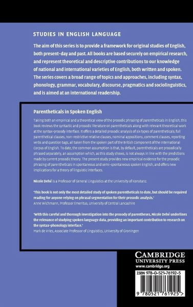 This book investigates the prosodic phrasing of parentheticals in spoken English and implications for a theory of the syntax-prosody interface.