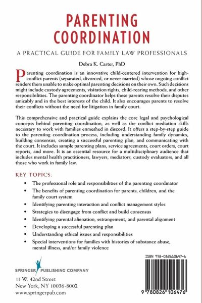 The text offers up-to-date research, a practical guide for training, service provision, and references to relevant research for quality parenting coordination practice. Specifically, this book describes the integrated model of Parenting Coordination, including the Parent Coordinator's professional role, responsibilities, protocol for service, and ethical guidelines.