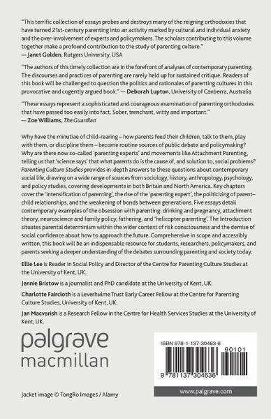"This text would be useful for those new to parenting studies as it provides a clear and accessible overview of the field. The bullet pointed chapter summaries at the end of each chapter and the beginning of each essay makes the book a useful educational resource ... . the detailed analysis and stimulating arguments in relation to specific areas of contemporary parenting culture makes the text worthwhile reading for those already knowledgeable of the existing literature." (Michelle Webster, The Sociological Review, Vol. 63 (1), May, 2015)