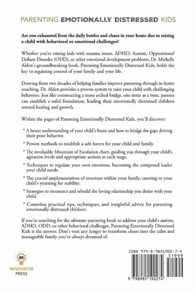 Are you exhausted from the daily battles and chaos in your home due to raising a child with behavioral or emotional challenges? Whether you're raising kids with trauma issues, ADHD, Autism, Oppositional Defiant Disorder (ODD), or other emotional development problems, Dr. Michelle Alden's groundbreaking book, Parenting Emotionally Distressed Kids , holds the key to regaining control of your family and your life. Drawing from two decades of helping families improve parenting through in-home coaching, along with extensive research and education, Dr. Alden provides a proven system to raise your child with challenging behaviors-from toddler to teen. Just like constructing a stone arched bridge, one stone at a time, parents can establish a solid foundation, leading their emotionally distressed children toward healing and growth. Alden unravels the critical factors contributing to disruptive family dynamics and equips you with effective strategies to restore stability and harmony at home. With a compassionate and expert approach, she delves into managing the intricate needs of a volatile child with big emotions. Within the pages of Parenting Emotionally Distressed Kids, you'll discover: * A better understanding of your child's brain and how to bridge the gaps driving their poor behavior. * Proven methods to establish a safe haven for your child and family. * The invaluable Mountain of Escalation chart, guiding you through your child's agitation levels and appropriate actions at each stage. * Techniques to regulate your own emotions, becoming the composed leader your child needs. * The crucial implementation of structure within your family, catering to your child's yearning for stability. * Strategies to reconnect and rebuild the loving relationship you desire with your child. * Countless practical tips, techniques, and insightful advice for parenting emotionally distressed children. Empowering and informative, Parenting Emotionally Distressed Kids enables parents to conquer obstacles, foster resilience, and cultivate an environment that nurtures their children's emotional well-being. This indispensable resource is a must-have for parents, caregivers, and professionals seeking a comprehensive approach to understanding and raising children with complex emotional needs. Dr. Michelle Alden's practical wisdom and compassionate insight pave the way for families to thrive, one stone at a time, on their journey to a stronger and more resilient future. If you're searching for the ultimate parenting book to address your child's autism, ADHD, ODD, or other behavioral challenges, Parenting Emotionally Distressed Kids is the answer. Don't wait any longer to transform chaos into the calm and manageable family you've always dreamed of. Grab your copy today and embark on a life-changing journey.