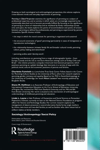 Drawing on both sociological and anthropological perspectives, this volume explores cross-national trends and everyday experiences of 'parenting'. Parenting in Global Perspective examines the significance of 'parenting' as a subject of professional expertise, and activity in which adults are increasingly expected to be emotionally absorbed and become personally fulfilled. By focusing the significance of parenting as a form of relationship and as mediated by family relationships across time and space, the book explores the points of accommodation and points of tension between parenting as defined by professionals, and those experienced by parents themselves. Specific themes include: the ways in which the moral context for parenting is negotiated and sustained the structural constraints to 'good' parenting (particularly in cases of immigration or reproductive technologies) the relationship between intimate family life and broader cultural trends, parenting culture, policy making and nationhood parenting and/as adult 'identity-work'. Including contributions on parenting from a range of ethnographic locales - from Europe, Canada and the US, to non-Euro-American settings such as Turkey, Chile and Brazil, this volume presents a uniquely critical and international perspective, which positions parenting as a global ideology that intersects in a variety of ways with the political, social, cultural, and economic positions of parents and families.