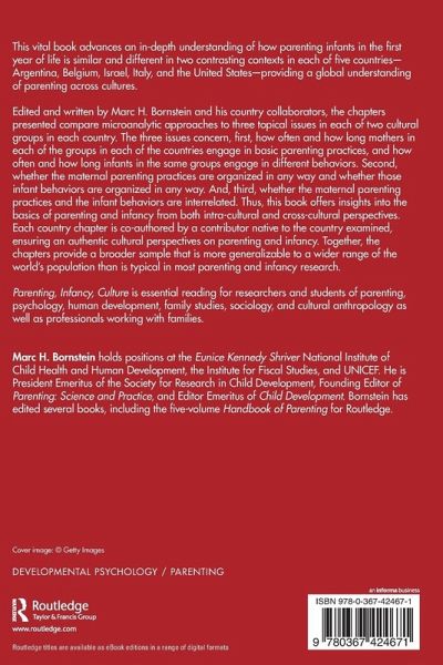 Edited and written by Marc H. Bornstein and his country collaborators, the chapters presented compare microanalytic approaches to three topical issues in each of two cultural groups in each country. The three issues concern, first, how often and how long mothers in each of the groups in each of the countries engage in basic parenting practices, and how often and how long infants in the same groups engage in different behaviors. Second, whether the maternal parenting practices are organized in any way and whether those infant behaviors are organized in any way. And, third, whether those maternal parenting practices and those infant behaviors are interrelated. Thus, this book offers insights into the basics of parenting and infancy from both intra-cultural and cross-cultural perspectives. Each country chapter is co-authored by a contributor native to the country examined, ensuring an authentic cultural perspectives on parenting and infancy. Together, the chapters provide a broader sample that is more generalizable to a wider range of the world's population than is typical in most parenting and infancy research.